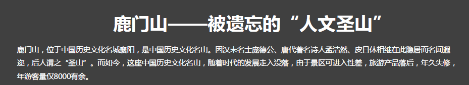項目地點:湖北襄陽鹿門山旅游度假區(qū)